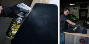 - Cubra quaisquer plásticos interiores, controlos de assento, molduras exteriores, guarnições, etc., para evitar a pulverização excessiva.