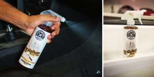 - Aplicar ligeiramente à volta de tapetes, estofos de tecido, e debaixo dos assentos.