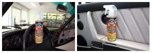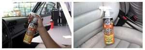 - Aplicar ligeiramente à volta de tapetes, estofos de tecido, e debaixo dos assentos.