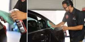 Apenas um deslize enquanto se detalha pode deixar uma marca permanente: todos nós manchámos um pouco de cera em peças de plástico e borracha em pára-choques, espelhos, e portas. A cera infiltra-se no plástico texturizado e nas partes de borracha texturizadas, deixando uma mancha branca gessada que simplesmente não sai. Trim Clean dissolve ativamente, limpa e remove a cera seca das peças de plástico e borracha.