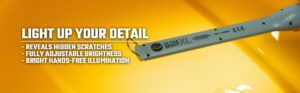 Pensa que tem o polimento perfeito? Pense de novo! Pequenos arranhões e imperfeições superficiais não são visíveis à vista de todos ou mesmo à luz forte da garagem, mas estragam o acabamento de um novo trabalho de polimento. O Ultra Brilhante XL revela riscos escondidos, remoinhos, e outras imperfeições de pintura ao polir, pelo que a sua pintura é verdadeiramente perfeita. Depois do seu polimento, use-o para iluminar a sua pintura, compartimento do motor, debaixo dos assentos, caves de rodas, o derradeiro detalhe de interior e exterior!