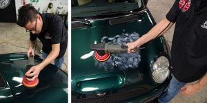 Par V32 com um polidor rotativo para uma combinação de corte agressiva para eliminar rapidamente defeitos pesados, ou utilizar V32 com uma polidora de dupla ação para uma ação de corte rápida que seja segura para qualquer tipo de tinta e acabamento. V32 corta imperfeições moderadas a profundas e refina o acabamento a um nível intermédio perfeito para o polimento da etapa final com um polimento mais leve como V36 ou V38.