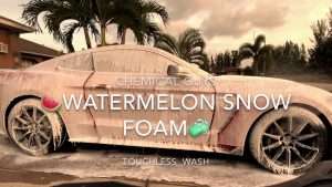 Watermelon Snow Foam uma espuma de neve a Melancia! Um cheiro exatamente como uma suculenta fatia de melancia sem sementes pronta a ser comida e ainda cria uma espuma espessa que só a Chemical Guys sabem produzir shampoos assim !